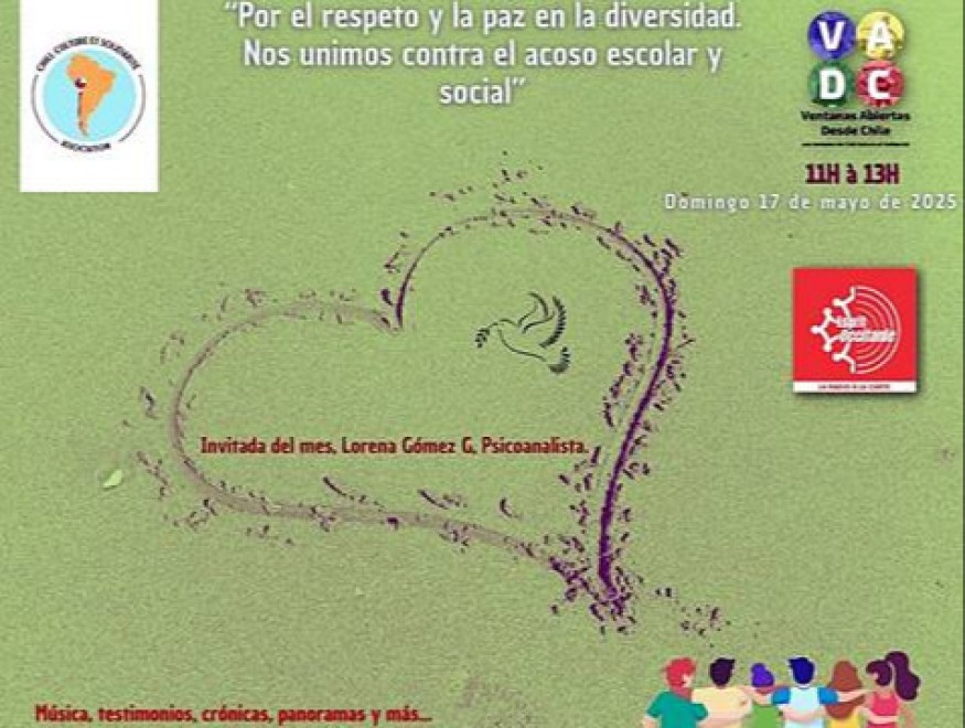 Ce mois VADC émission radio en français et espagnol "Ventanas abiertas desde Chile" sur Radio Web esprit Occitanie depuis la maison de l'Occitanie à L'Ostal d'Occitania . Ce mois-ci notre émission spéciale est consacrée à "Por el respeto y la paz en la diversidad. Nos unimos contra el acoso escolar y social"