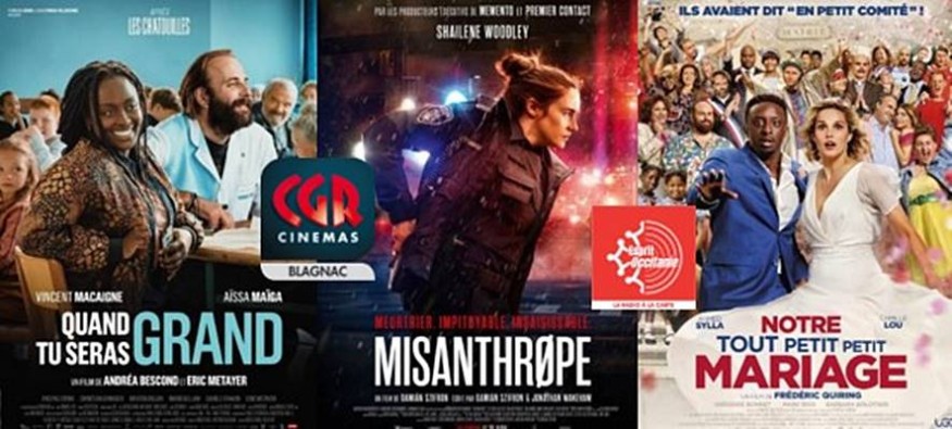Cette semaine nous mettons à l’honneur 3 films « Quand tu seras grand », « Misanthrope » et « Notre tout petit petit mariage » tous découvert au CGR Blagnac.