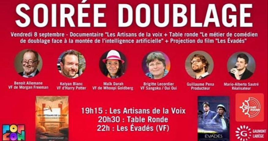 Ce vendredi 8 septembre, le Gaumont Labège organise une soirée spéciale doublage en partenariat avec la Popcon. Au programme la projection du documentaire « Les Artisans de la voix : les coulisses du doublage », une table ronde sur l’Intelligence Artificielle en présence des comédiens de doublage : Brigitte Lecordier, Benoit Allemane, Kelyan Blanc et Maïk Darah. Pour finir, projection du film culte « Les Evadés ». Réservez vite vos places sur le site internet du Gaumont Labège.