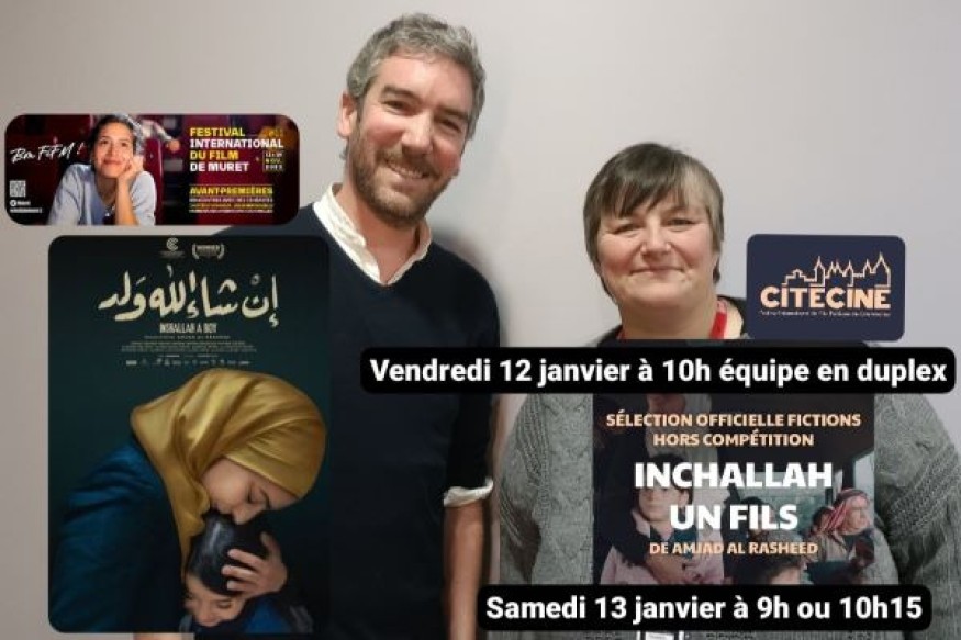 Très belle découverte au festival international du film de Muret, "Inchallah un fils" sera aussi présenté au festival CitéCiné qui se tient à Carcassonne du 11 au 15 janvier. Pour vous donner l'eau à la bouche, je vous propose d'écouter l'interview du producteur Nicolas Leprêtre. Vous pourrez découvrir le film en avant-première à Carcassonne le vendredi 12 (équipe du film en duplex ) ou le samedi 13 janvier. Toute la programmation et les horaires du festival CitéCiné sur le site officiel de l'évènement.