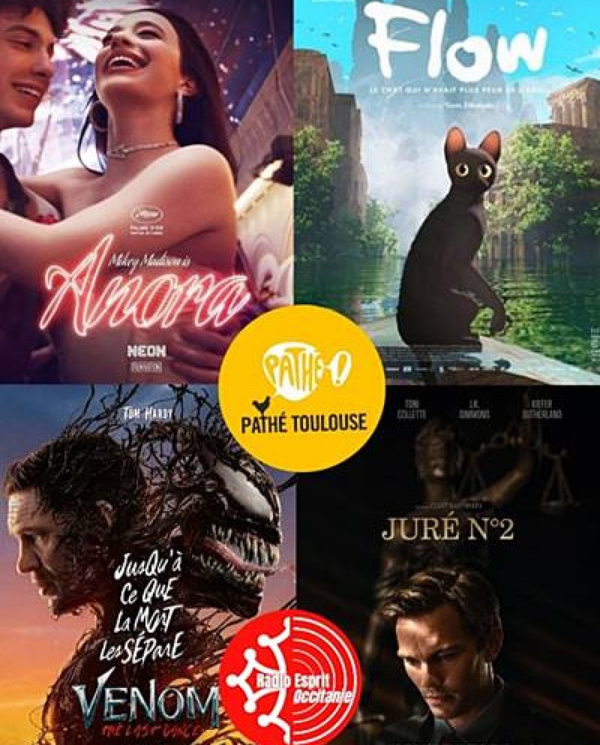 Pour la sortie au cinéma du 30 octobre nous vous présentons 4 films : la Palme d'Or du festival de Cannes "Anora", le dernier Marvel "Venom, The last dance", le film d'animation "Flow, le chat qui n'avait plus peur de l'eau", et enfin le dernier né du réalisateur Clint Eastwood "Juré n°2".